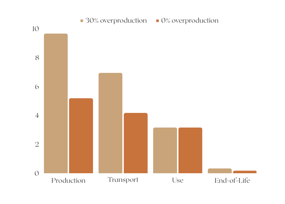 Eliminating initial upperwear overproduction would theoretically decrease emissions for the total life cycle per upperwear garment sold by a staggering 37%.