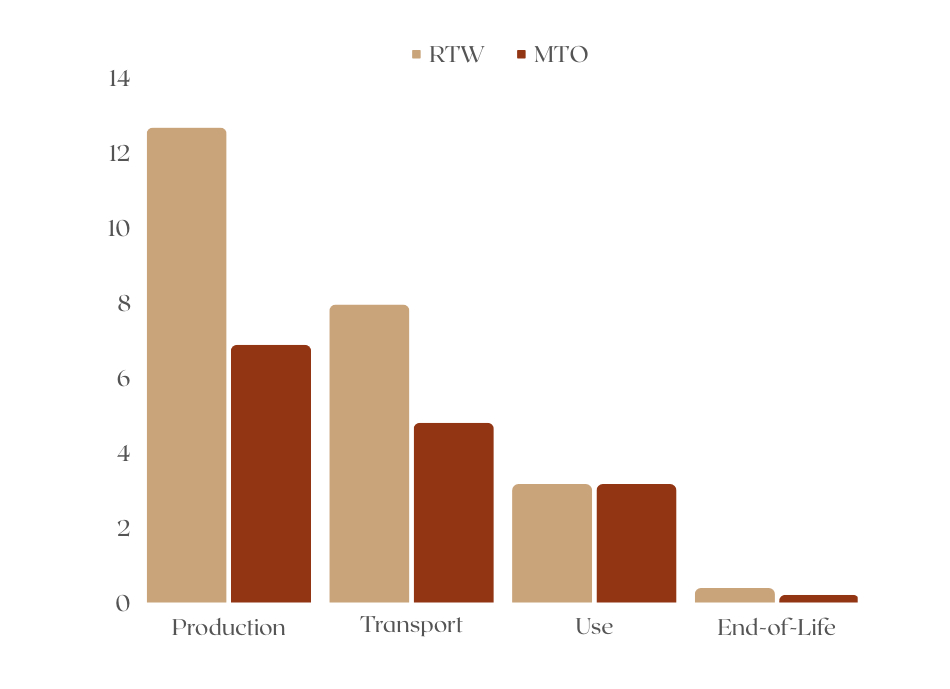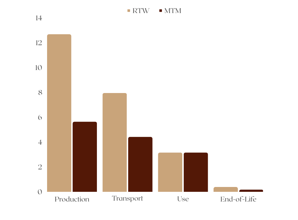 When near-shored, MTM could be 45% less polluting than RTW, for the whole life cycle of the garment.