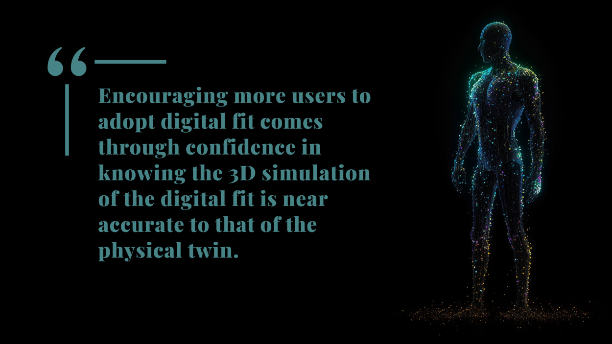 Digital avatars introduce a scientific and standardized approach to fitting, mitigating the subjectivity associated with model feedback. Moreover, it facilitates benchmarking fits across sizes and product ranges, empowering brands and vendors to make decisions concurrently on multiple digital models, a capability previously unattainable. Being able to scientifically quantify fit, which can become a standardised way of interpreting comfort can create a game changing opportunity in the product development realm.