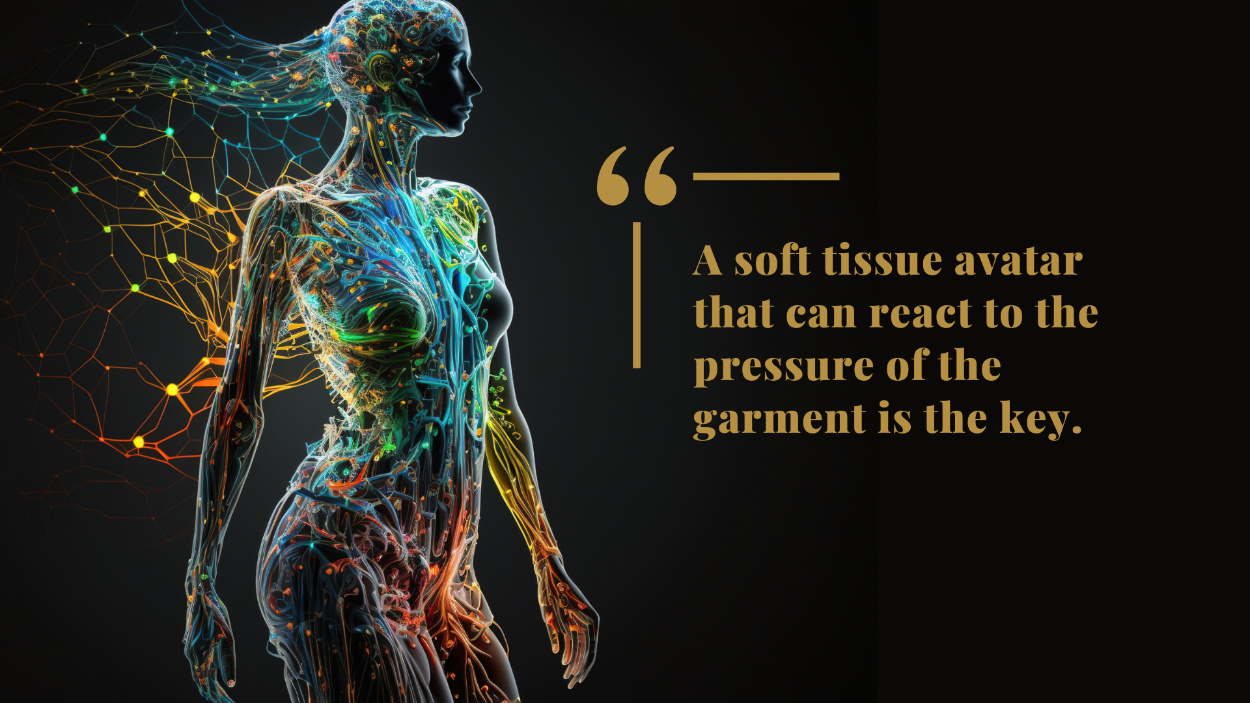 • Replicating the process of fitting garments on live models, digitally, will mean replacing traditional hard body 3D avatars with soft-tissue avatars that are able to react to garment pressure.