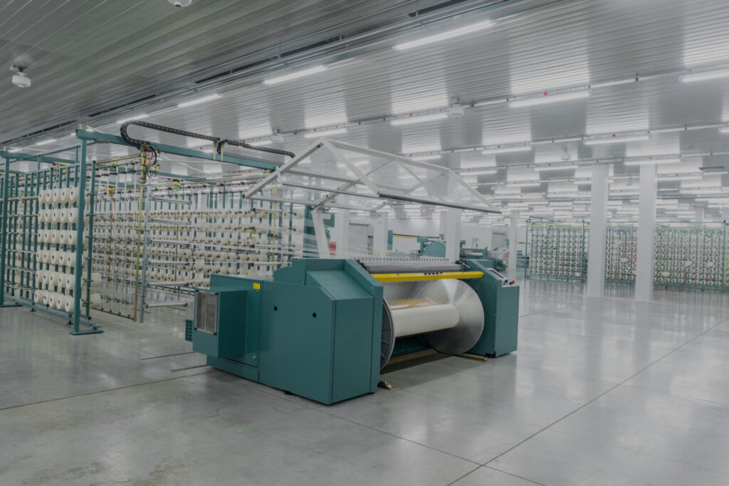 textile yarn on the wrapping machine is screwed on the big shaft. machinery and equipment in a textile factory