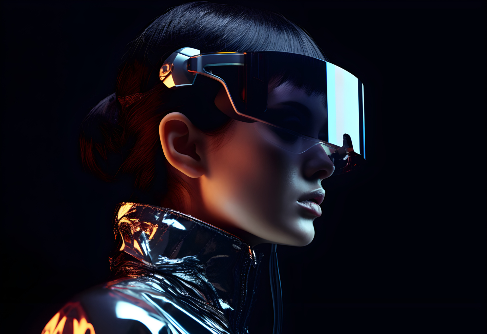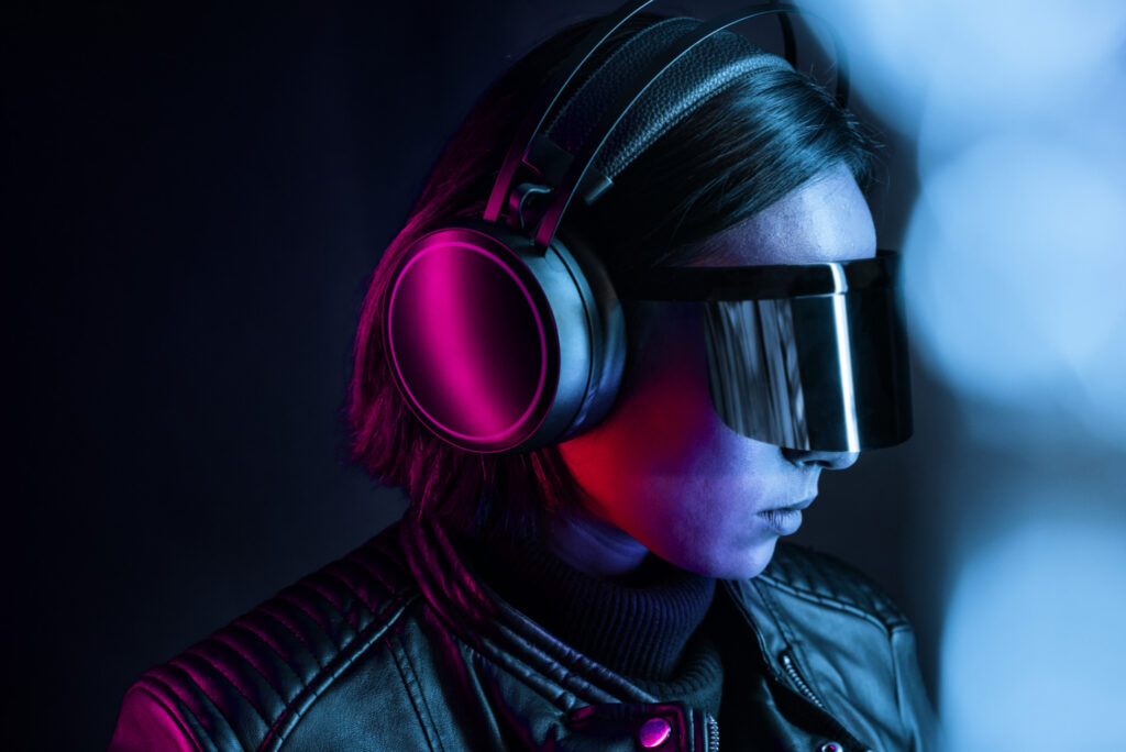 Woman in virtual reality glasses smart technology
