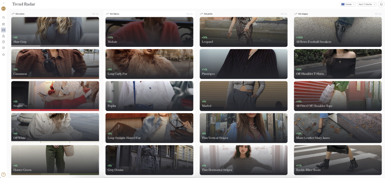 The key is primarily to have a deep understanding of the industries for which AI is designed. Industry experts are needed to truly meet needs and especially to anticipate the recurring and natural questions of a product or collection development process. If the data resulting from the AI’s action makes sense to the teams, 80% of the job is done. The challenge is to teach them to make sense of unique data even though the backgrounds are very different among a designer, a merchandiser, a buyer, a marketer, or a communicator. Heuritech’s unique feature is that we bet on the fact that a single platform equipped with easily understandable and actionable data is the key to fruitful and smooth cross-team collaboration. Our efforts are entirely dedicated to this goal.