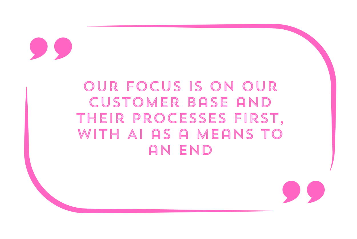 Our focus is on our customer base and their processes first, with AI as a means to an end. We work hand-in-hand with our customers to examine these problems and figure out how technology can be best applied in each scenario. Rather than saying ‘AI can fix this’, we ask whether AI has a role in fixing this, and how. In addition, we have to also consider customer adoption challenges (e.g. adoption resistance) and incorporate method steps that validate and inspire confidence in the recommendations made by AI as well as the overall business results.