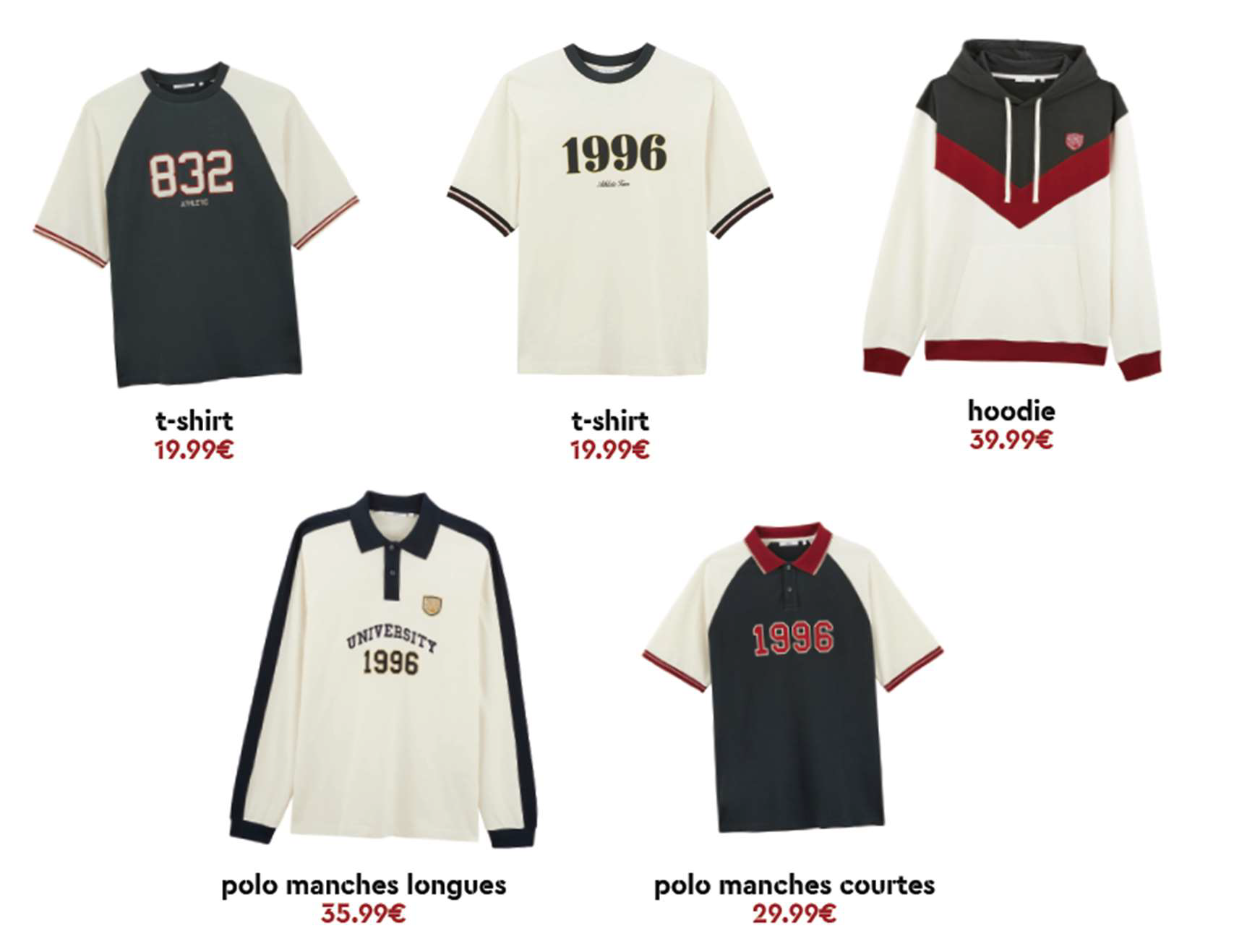 The collection, comprising 11 pieces ranging from t-shirts and polo shirts to jog suits and teddies, offers a sporty, vintage, and contemporary look – perfect for a “back to work” style. A collection that’s accessible to everyone, with products starting at 19.99€.