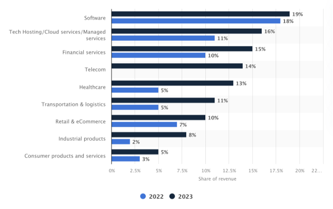 Figure 3: Statista IT spending as share of company revenue in 2022 and 2023, by industry [5]