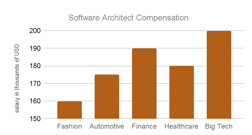 A software architect (again not surprisingly) stands to make the most in big tech. Like CTO’s, software architects are paid substantially more in other industries.