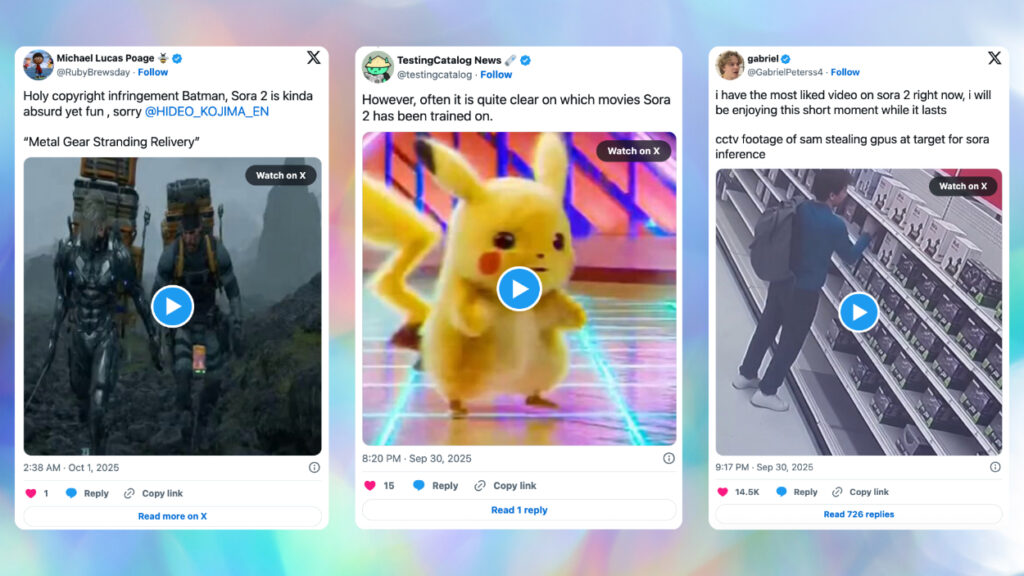 All screenshots from Gizmodo article ‘The First 24 Hours of Sora 2 Chaos: Copyright Violations, Sam Altman Shoplifting, and More’