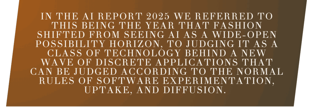 In The AI Report 2025 (free to download here at The Interline, and featuring perspectives from our writers, industry figures as well as top executives from Centric Software, Browzwear, and other technology companies) we referred to this being the year that fashion shifted from seeing AI as a wide-open possibility horizon, to judging it as a class of technology behind a new wave of discrete applications that can be judged according to the normal rules of software experimentation, uptake, and diffusion.