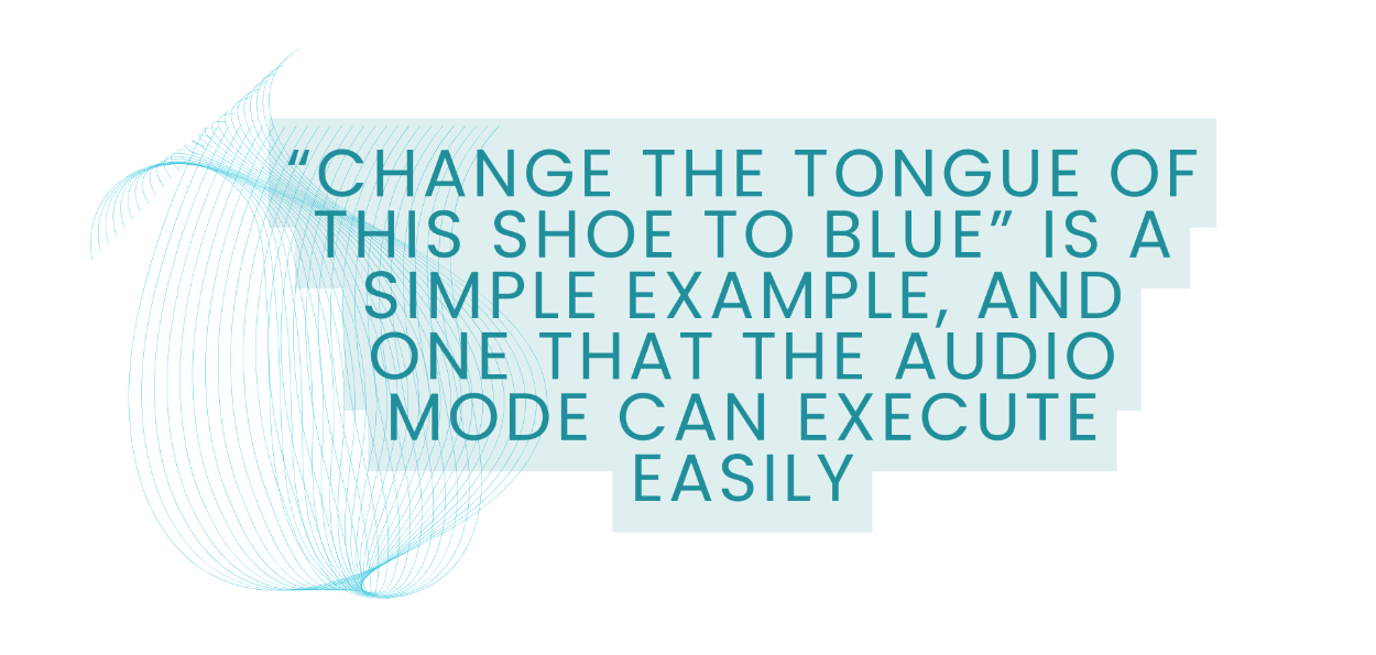 For internal terms looking to prototype by iterating on an existing silhouette or platform (in the case of footwear) it’s hard to overstate just how much simpler a process it could be to allow AI to generate a model of a product, to segment it, and to then give simple voice commands to a model that then puts them into practice. “Change the tongue of this shoe to blue” is a simple example, and one that the audio mode can execute easily, but it’s also an interaction that relies on and simultaneously hides a lot of different, complex pieces under the hood.