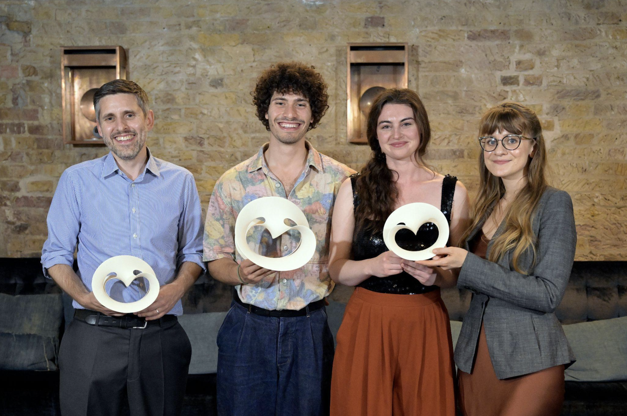 Manufacturing Futures 2024 winner Fibe (middle), and runners-up Fab Materials (left) and Sequinova (right)