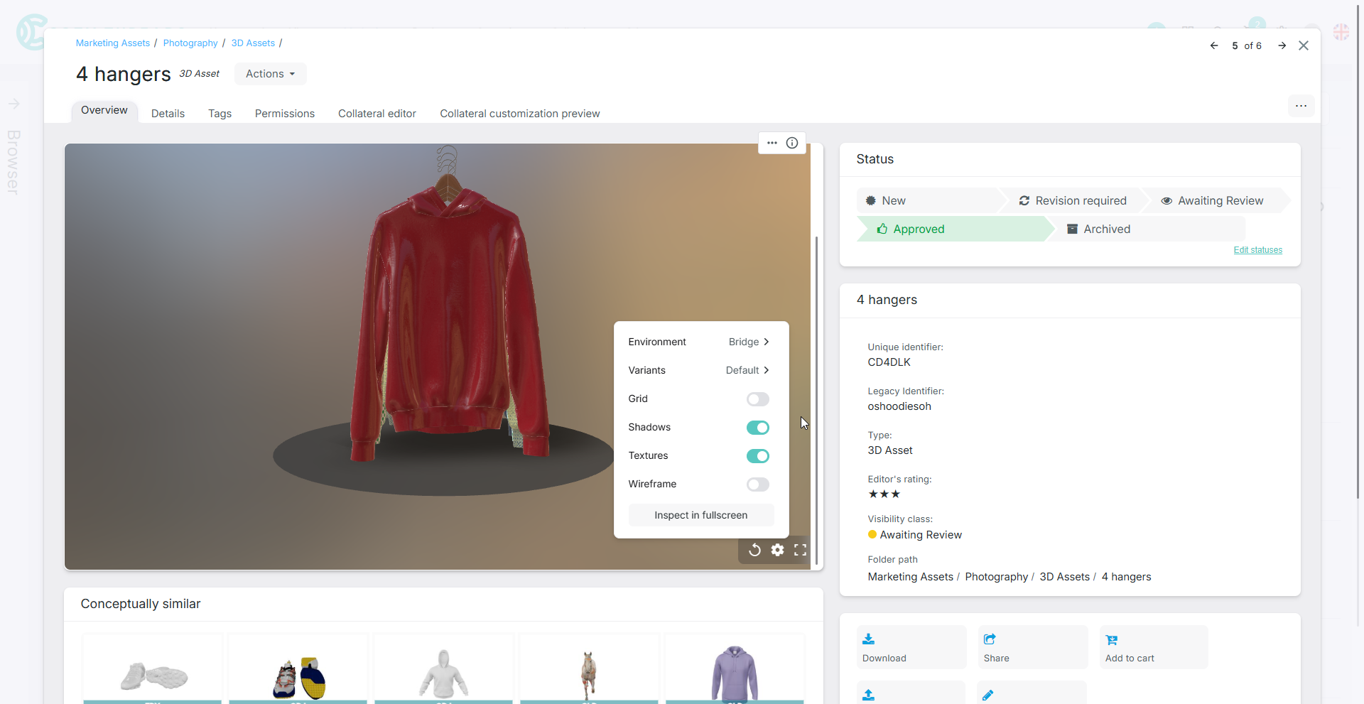 - Faster, less painful DPC and 3D workflows: One of the biggest hidden costs in DPC is the time spent finding and gathering assets. Teams often spend weeks tracking down every 3D file for every style and colorway to create seasonal renders for all regions. With DAM, those assets are already organized. You can request renders directly from a central library instead of hunting across teams.