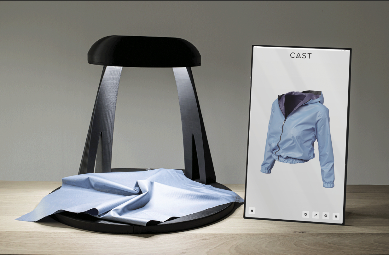 CAST enables the real-time, digital communication of fabrics between teams around the world. Consequently, a fabric mill in Asia can present materials interactively to a brand team in Europe, allowing decisions to be made without the need to ship physical samples. By simply placing a fabric on a scan surface, it gets streamed via an APP in high-quality on the viewers screen and allows instant visualization – and even AI enhanced output – on a product; making it easier to understand how it will look and behave in a final design.
